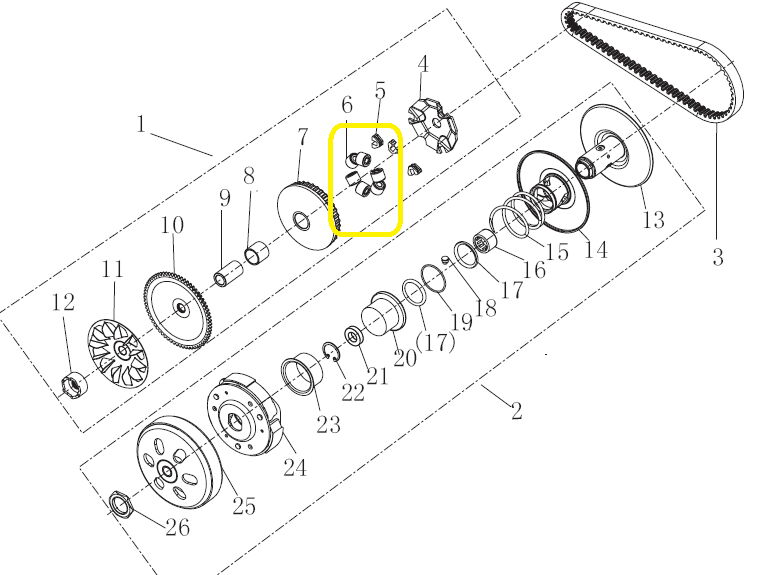 QJ ATR125 Debriyaj Tahrik Seti Baga 6lı
