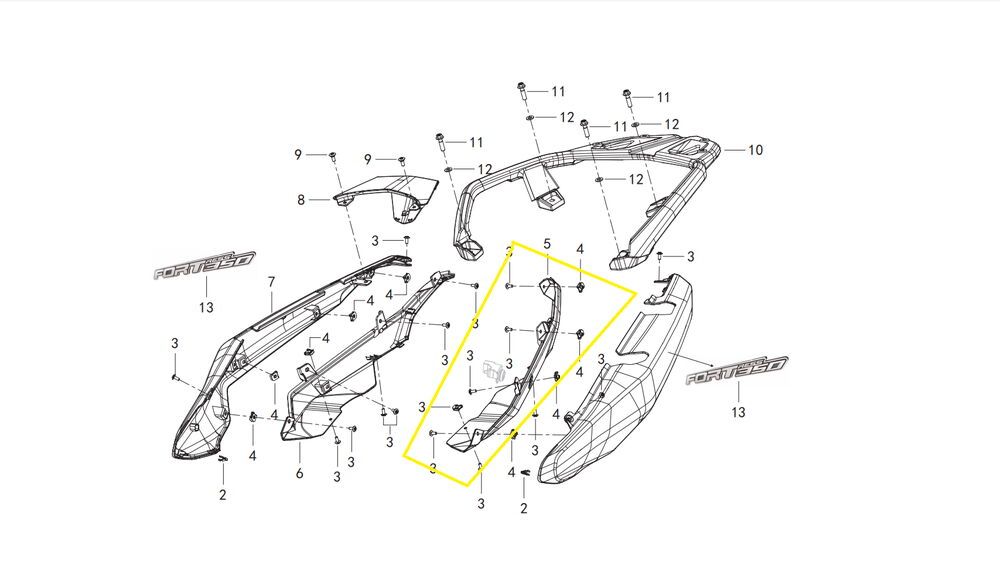 QJ FORTRESS350 Arka Kuyruk Grenajı Alt Plastik sol
