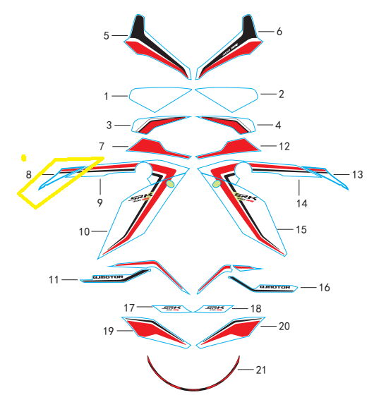 QJ SRK400RR Ön Stıcker Küçük sağ