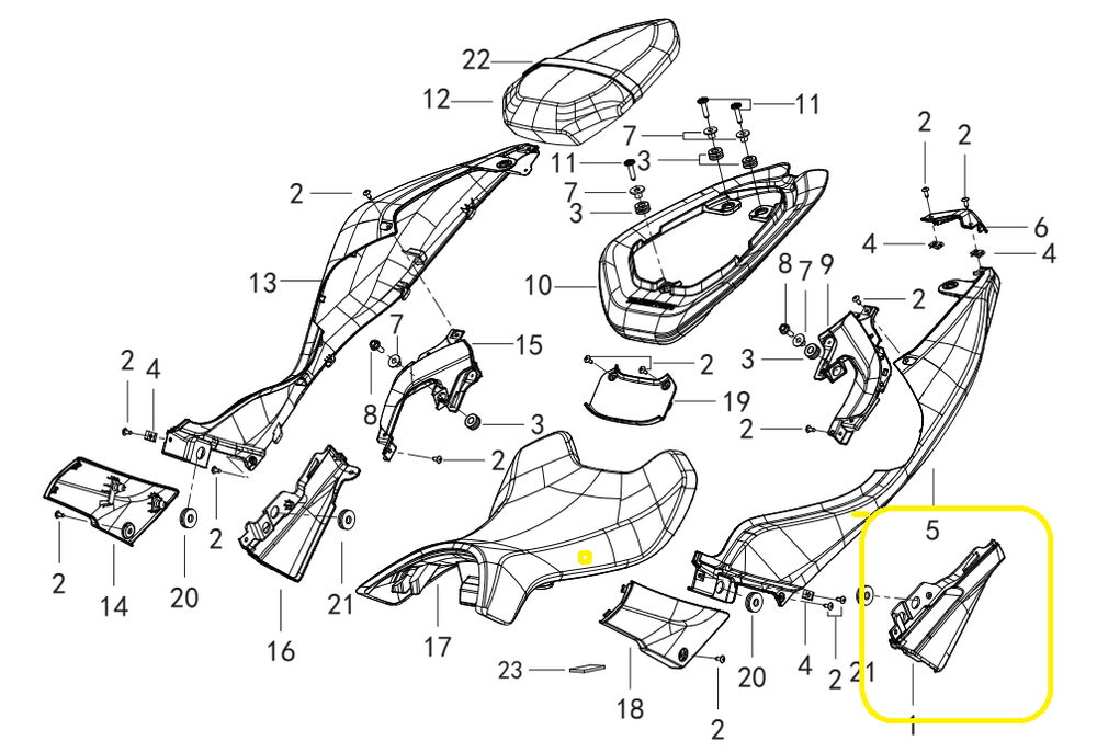 QJ SRK125S Arka Sele Alt Plastik sol